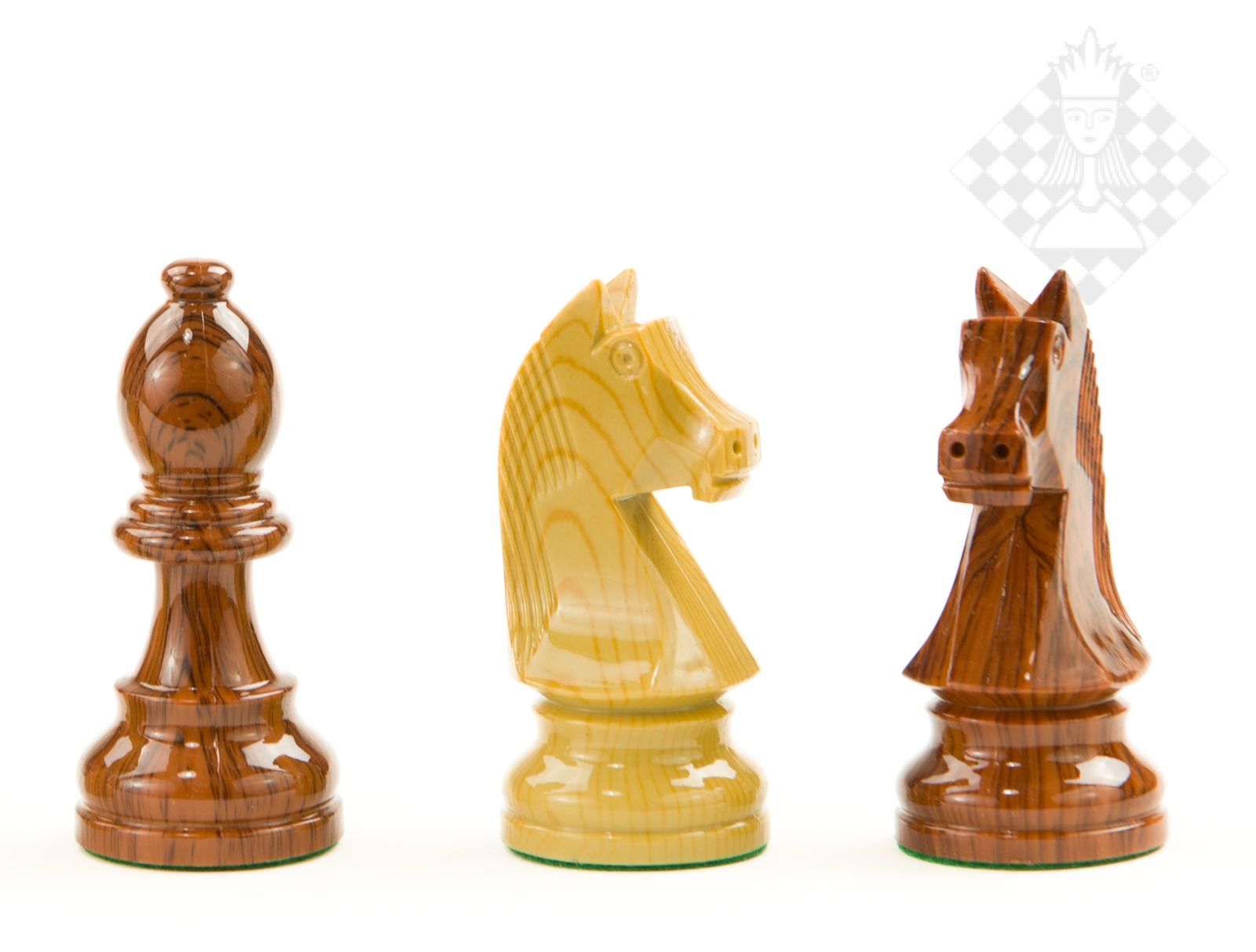 Schachfiguren Akazie /Buchsbaum, geschnitzte Springer, beschwert, Königshöhe ca. 97 mm Hinweis: Die Farbe der Schachfiguren aus Akazienholz kann von Figurensatz zu Figurensatz variieren und heller oder dunkler ausfallen. Diese Farbunterschiede entstehen durch natürliche Faktoren wie den Standort des Baums (sonnig, schattig, feucht, trocken), dessen Alter, die Jahreszeit der Holzernte sowie den Teil des Baums (Bodennähe, Mittelstamm oder Krone), aus dem das Holz stammt. Unser Produktbild zeigt einen typischen, mittleren Braunton, der jedoch von der tatsächlichen Lieferung abweichen kann.