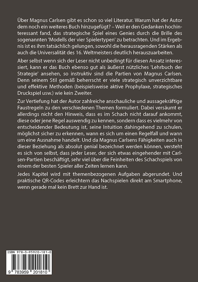 Ein Kapitel zum Mattangriff im Endspiel, ein Blick auf einige eindrucksvolle Angriffssiege des Autors sowie allerlei themenbezogene Aufgaben zu den einzelnen Kapiteln runden das Ganze ab. Außerdem ermöglichen praktische QR-Codes das Nachspielen direkt am Smartphone, wenn gerade mal kein Brett zur Hand ist.