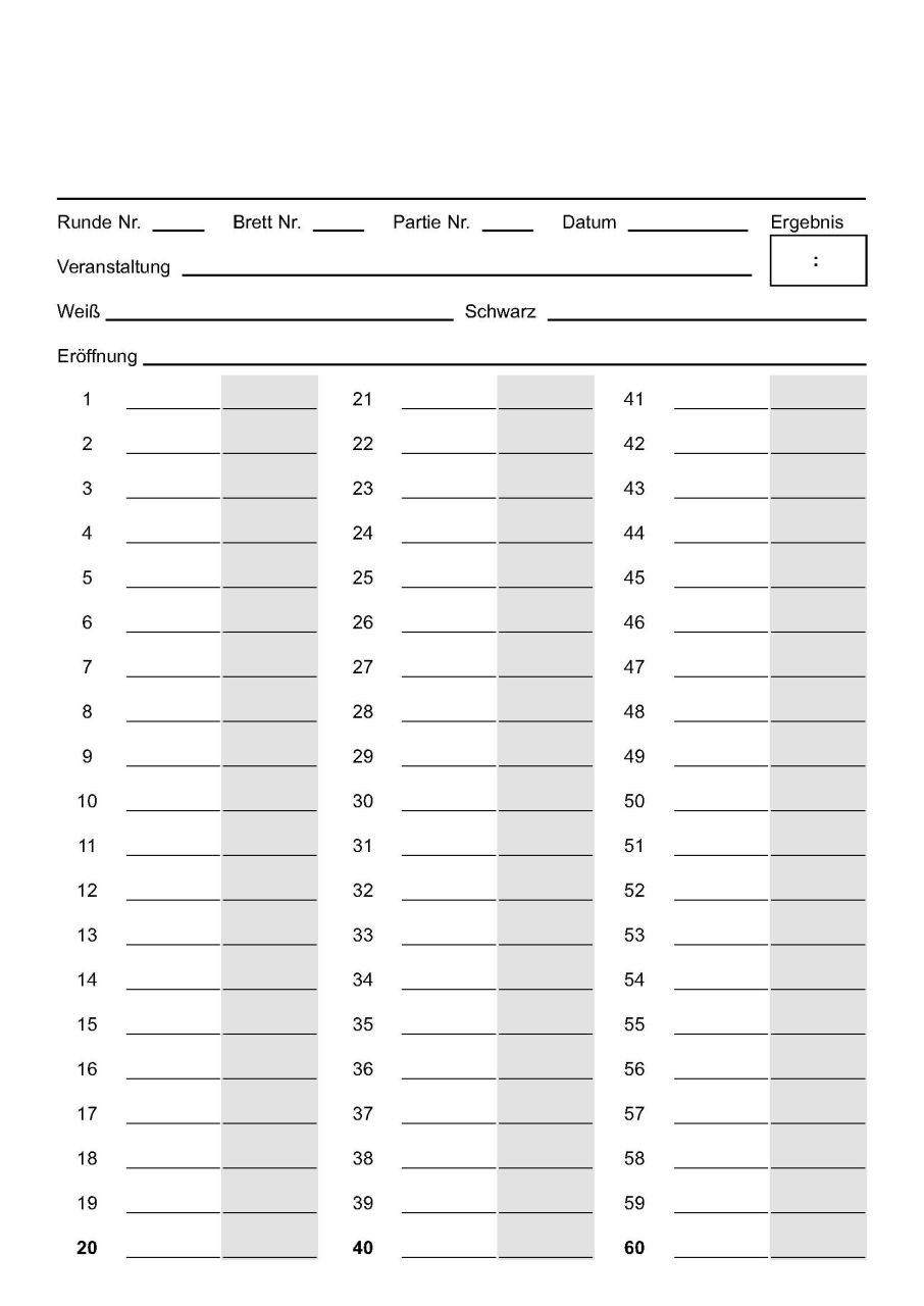 Partieformulare weiß, A5, 60 Züge, völlig neutral
