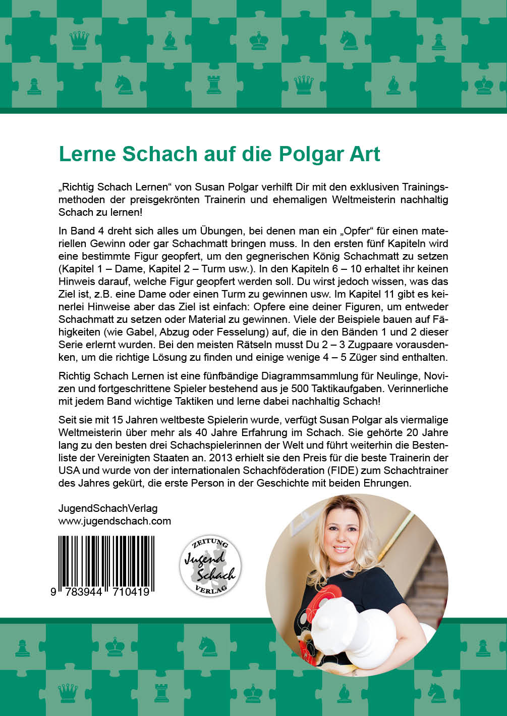 „Richtig Schach Lernen“ von Susan Polgar bietet Dir exklusive Trainingsmethoden der preisgekrönten Trainerin und ehemaligen Weltmeisterin! Die Kombination aus schneller Mustererkennung und gutem Gedächtnis ist einer der wichtigsten Bausteine beim erfolgreichen Schach lernen und spielen.